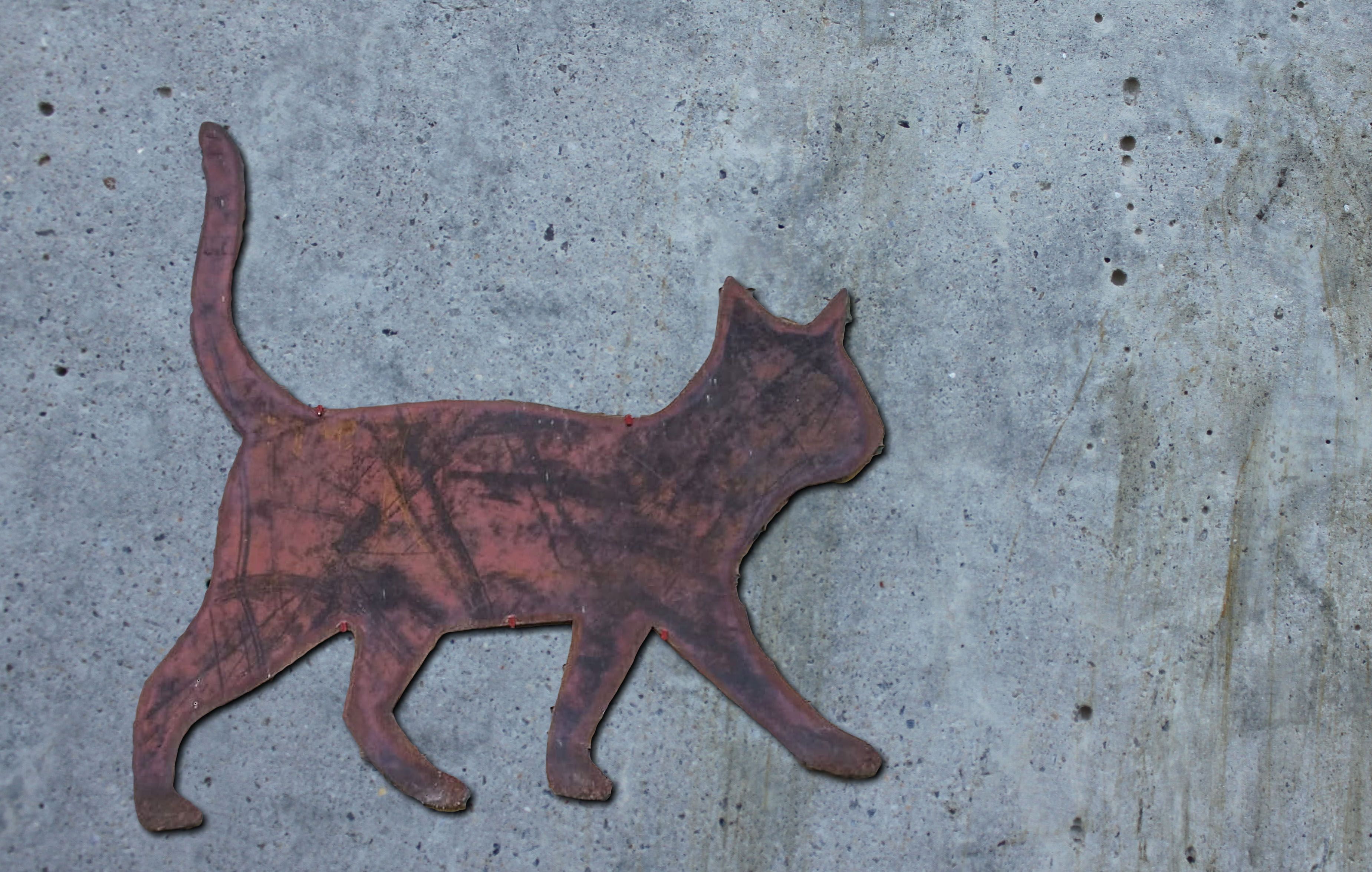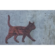 Dekorative Wand-Katze. Diese Katze ist aus Schiffbaustahl. Sie rostet unter Witterungseinflüssen und hat somit eine bengrenzte Lebensdauer, welche je nach Beanspruchung 10 Jahre oder länger betragen kann.
